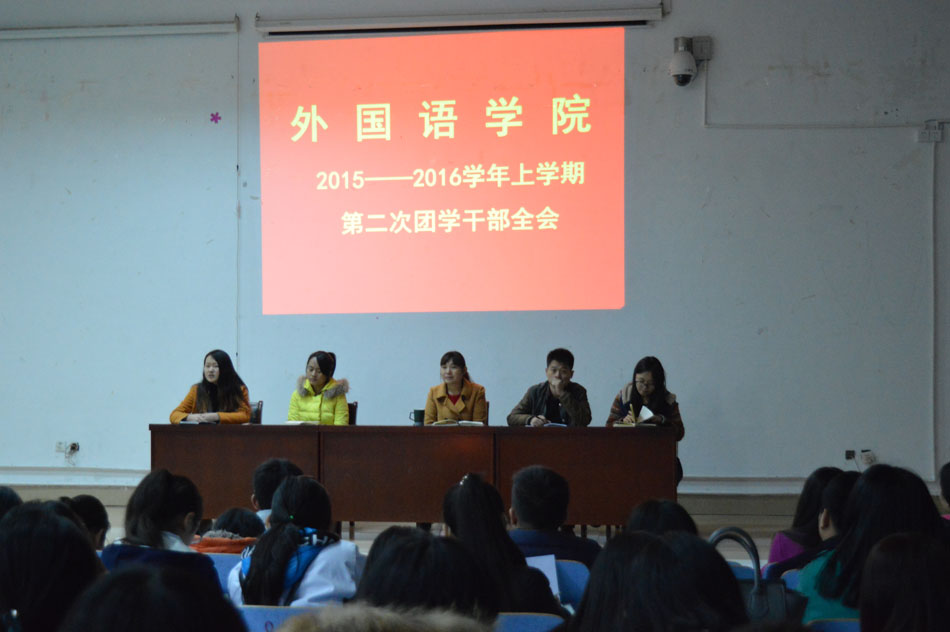 为强化我院学生会成员组织纪律性,推动团学工作有序开展,11月10日下午,万象城体育awcsport第二次团学全会在人文楼报告厅成功召开。我院团总支书记任芳,辅导员陈龙、孔宪巍,学生会主席苗璞及团总支副书记黄弈凤出席了本次会议,100余名学生干部参加会议。会议由苗璞主持。
