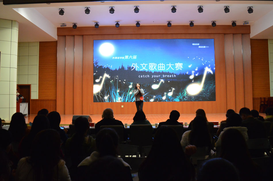 本次比赛以“唱出自信,秀出自我”为主题,共分为歌曲演唱和才艺展示两个环节,内容丰富,形式多样。歌曲演唱涉及英语、日语、韩语等语种,选手们饱含感情的演唱和俏皮逗趣的幻灯片展示,让人们眼前一亮,其中由选手黄午宵演唱的《Because of you》,极具爆发力的嗓音加上富有摇滚气息的曲风high翻了全场,而曹一姝的《For No Reason》悠扬的曲调,加上深情的演唱,给观众留下了深刻的印象。在才艺展示环节,选手们更是各出奇招,饱含感情的诗朗诵、城南旧事秀贞独白以及现场书法表演等把现场气氛推入高潮。