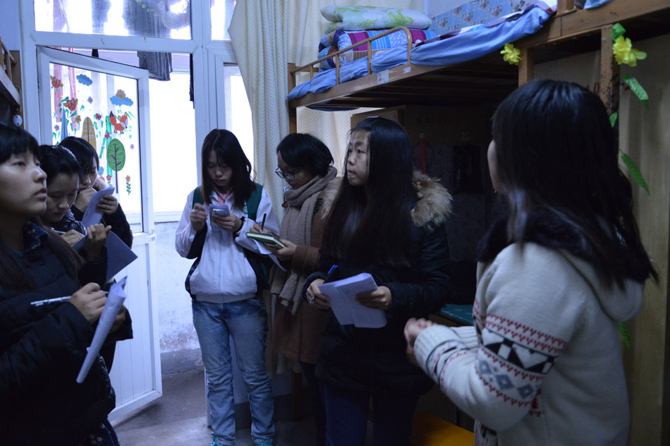 为响应学校号召,丰富寝室文化,我院精心组织全体新生举行了“绿色家园”寝室装扮活动。11月21日上午,我院学生会劳卫部、生活部、安教部的相关负责人组成评审团参观新生宿舍并对其进行评比和审查。