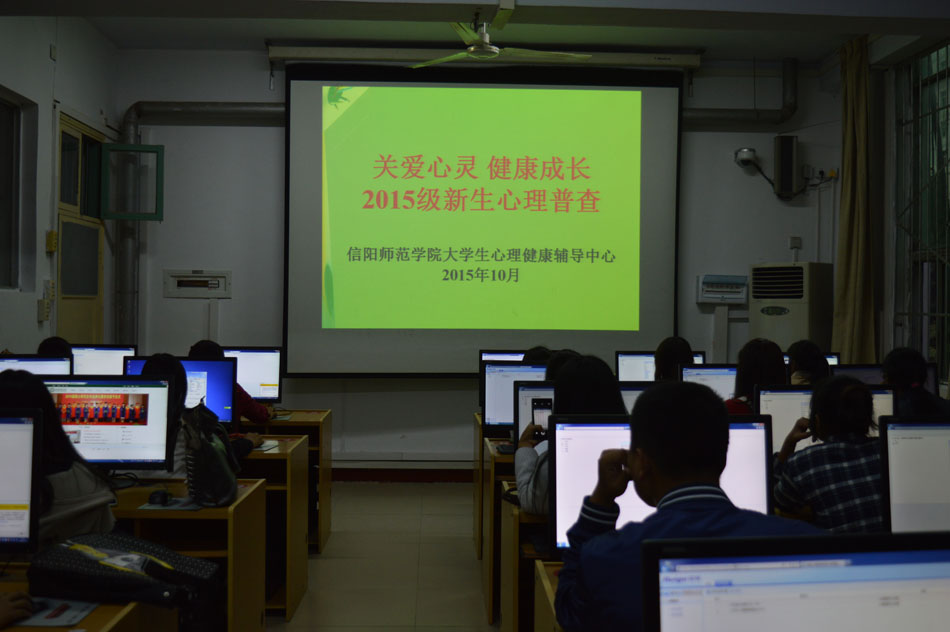 为配合大学生心理健康辅导中心开展心理健康普查工作,指导学生健康、快乐地度过大学时光,充分发挥每个学生的内在潜能,10月26日下午,在辅导员陈龙老师的组织安排下,万象城体育awcsport2015级全体新生在科技馆计算机实验机房进行心理普查活动。