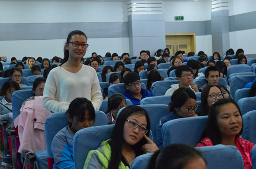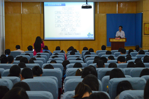 章国军教授以李白的“眼前有景道不得,崔颢题诗在上头”为引,道出了千百年来前驱研究者对后来者的压制与影响,就此展开了复译者如何通过误读创新实现名著解读上新的突破这一研讨话题。他围绕研究背景及意义、国内外研究现状、研究的主要内容、主要创新与不足四个方面详细阐述了“误读理论视角下的《孙子兵法》复译研究”,并结合国际上语言学误读、文化学误读等典型个案进行分析总结。章国军教授以脉络清晰的内容、幽默诙谐的语言、深入浅出的讲解赢得了学生的阵阵掌声。