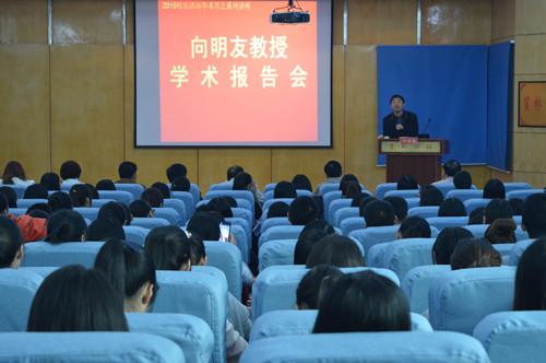 10月14日上午,应万象城体育awcsport的邀请,北京航空航天大学万象城体育awcsport院长向明友教授莅临我院,在贤林讲坛作了题为“语用化与语法化的纷争”的学术报告,我院200余名师生共同聆听了报告。报告会由我院院长刘世理主持。