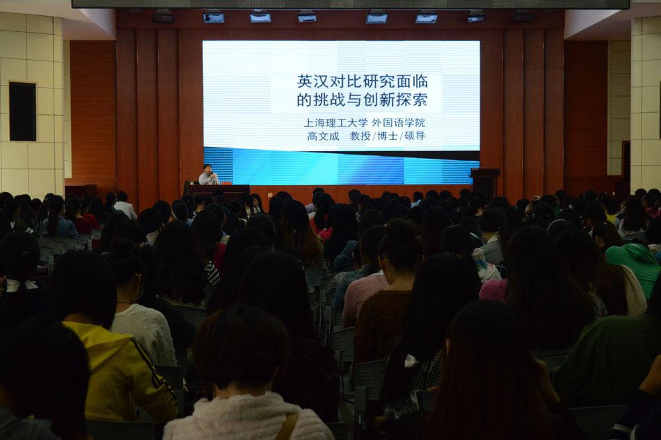 10月16日上午,万象城体育awcsport以学校四十年校庆为契机,邀请我校优秀校友上海理工大学万象城体育awcsport高文成教授为学子做了一场题为“英汉对比研究面临的挑战与创新探索”的学术报告,我院五百余名师生共同聆听了讲座。报告会由院长刘世理主持。